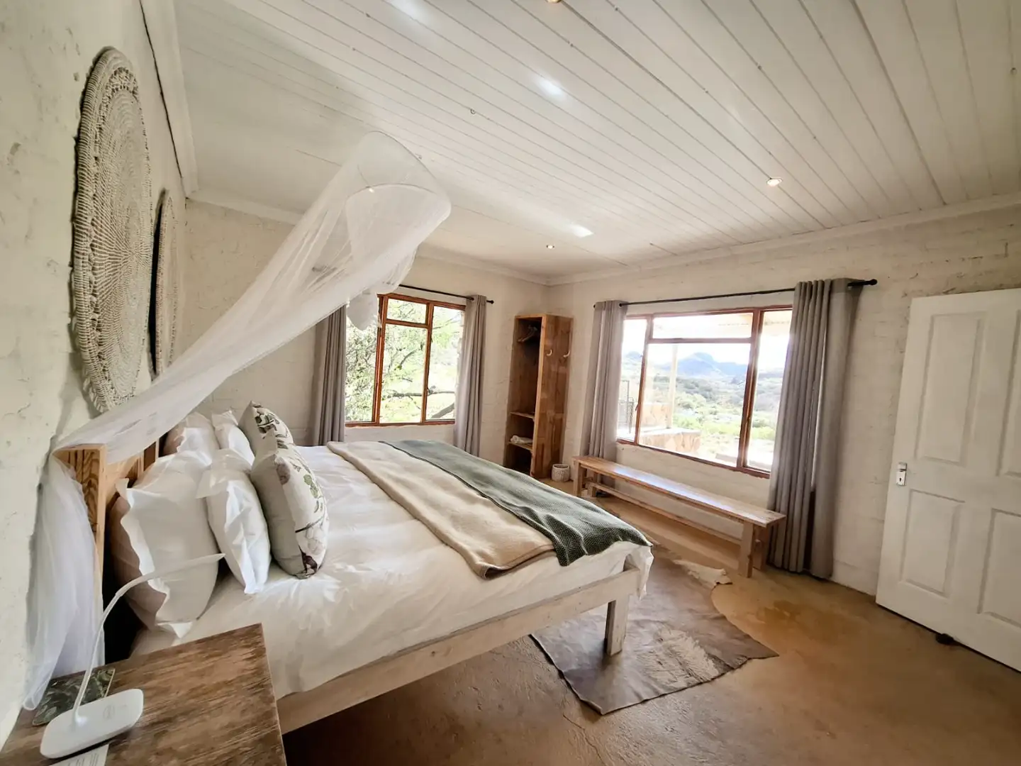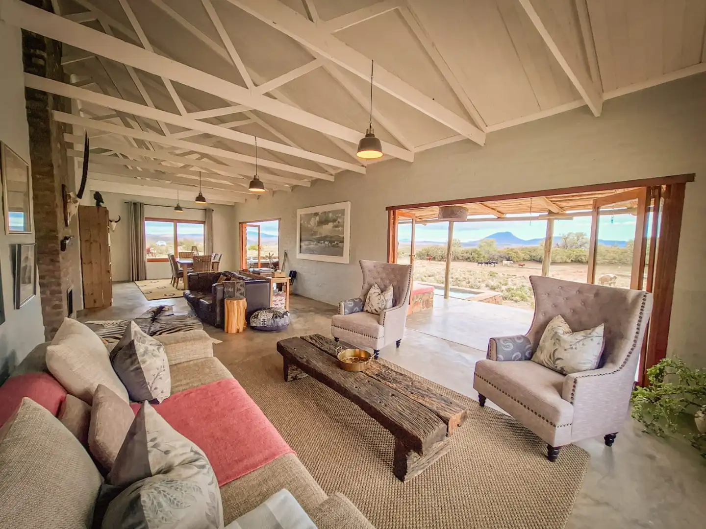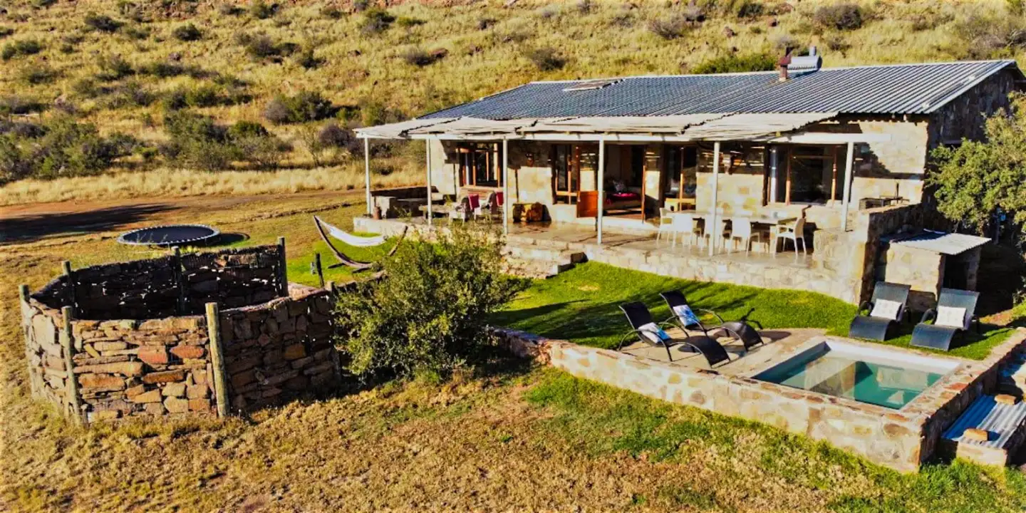 The Karoo Mountain Lodge is high up in the foothills of the mountains with beautiful Karoo scenery all around. This lodge is suitable for small families with older children or couples. It sleeps 4 guests comfortably. There is a plunge pool. Regret no pets allowed.