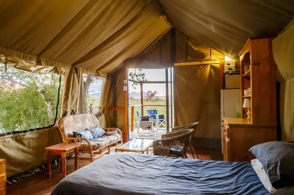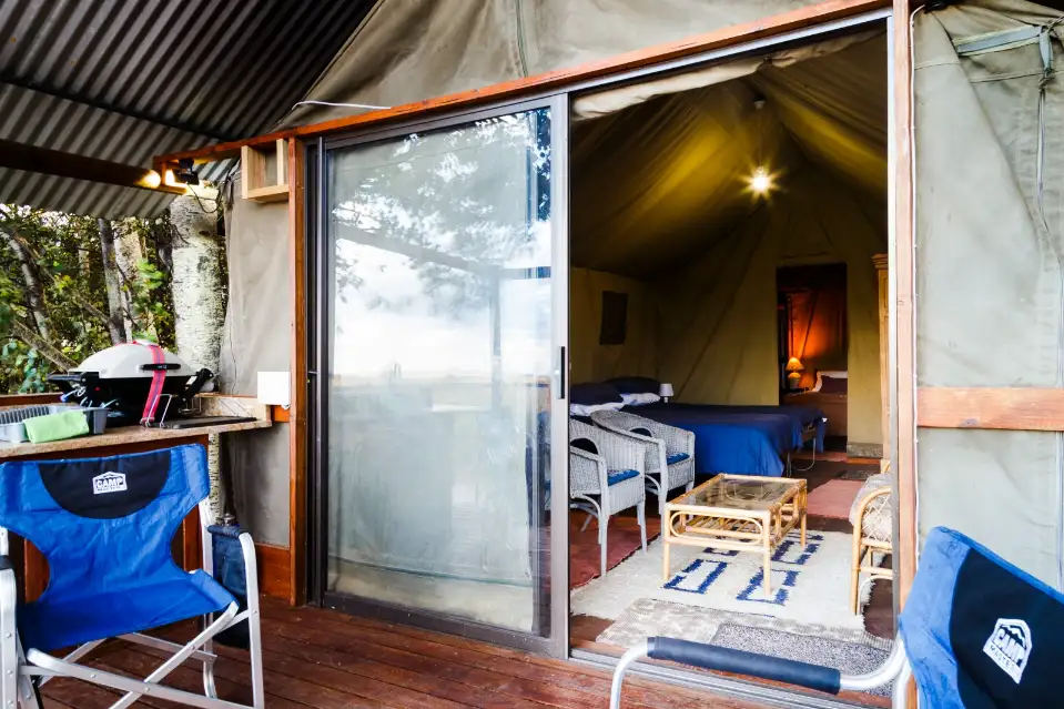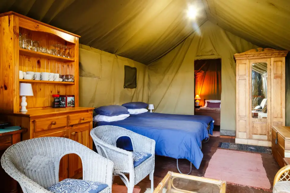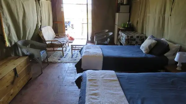 Both Tents are fully Equipped and have a en suite bathroom from the main bedroom. The tents have a mini kitchen and a gas braai facility on the deck of each tent.
